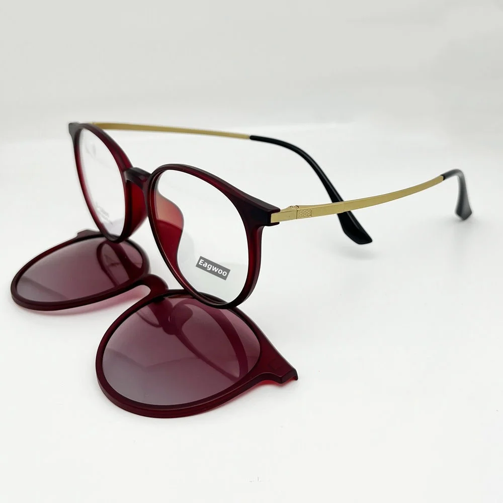 Women Magnet Eyeglasses Round Full Rim Optical Frame With Sunglasses Clip 0087